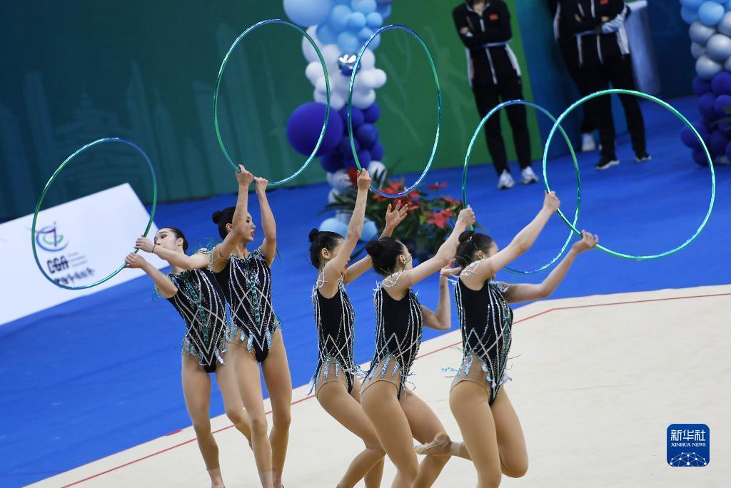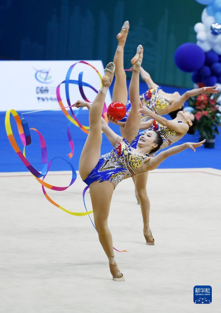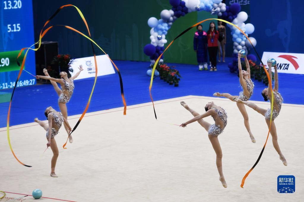 11月24日,重庆队在成年集体3带2球比赛中,她们以25.95分的成绩获该项目第三名。新华社记者 李紫恒 摄
