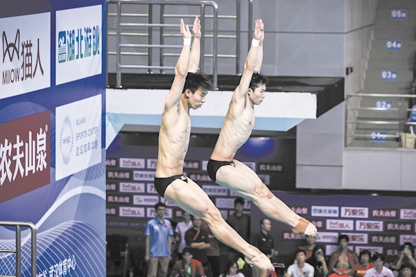 在本次锦标赛首日进行的男子三米板的比赛中,王宗源以584.35分摘得首冠。双人三米板的争夺共有24对选手参赛,王宗源与龙道一携手,展现了高人一筹的硬实力,并一路领跑,轻松夺冠。