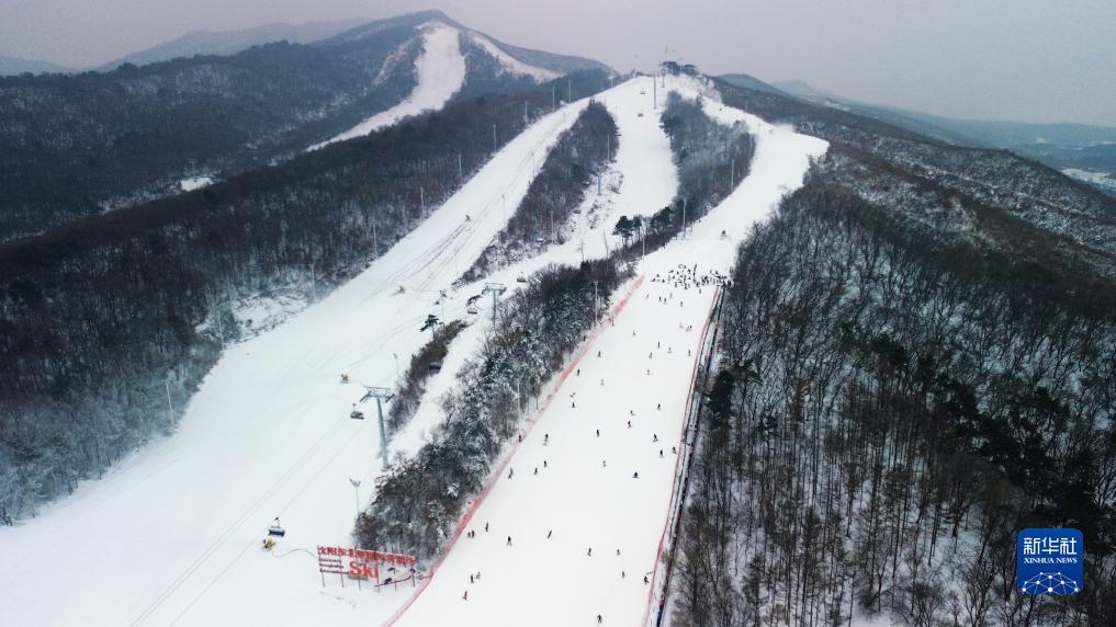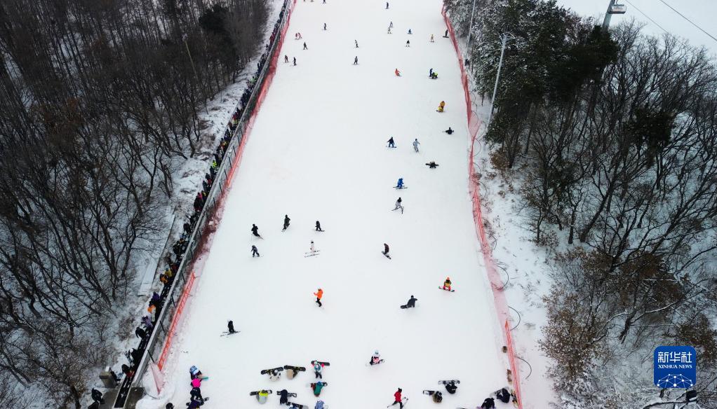 11月26日,滑雪爱好者在沈阳市东北亚滑雪场滑雪(无人机照片)。新华社记者 陈为 摄