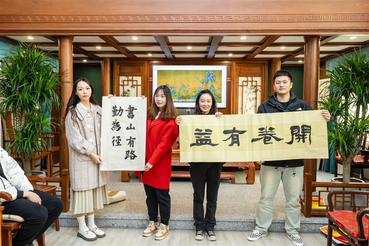 “书山有路勤为径、开卷有益……”随后,书画社成员现场为大家写下了多幅激励人心的书法作品。