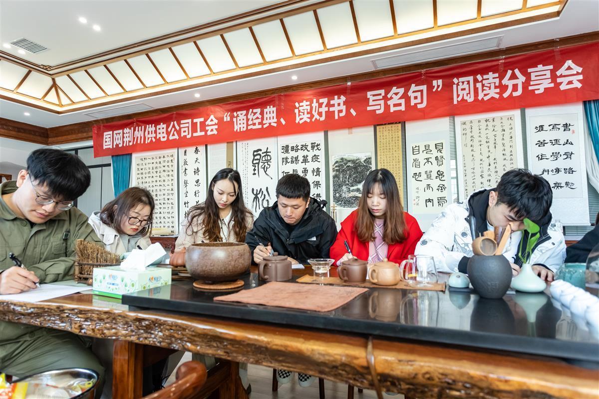 窗外鸟语花香,室内笔墨书香。11月26日,国网荆州供电公司工会文学社团联合书画社团在湖北荆州组织了一场特别的“诵经典、读好书、写名句”阅读分享会。