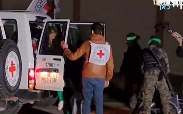 △27日晚,哈马斯将以色列被扣押人员转交给红十字会国际委员会