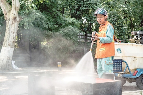 在路的起点,东湖风景区梨园广场片区全面深化保洁力度,日常采用人工与机械相结合的作业模式,对车行道、人行道、绿化带周边等重点部位进行精细化深度环卫工作。