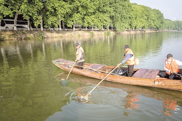 凌晨4点,10名环卫工人便提前到岗。 环卫组欧阳队长告诉记者,针对湖面垃圾,他们还组织船只和专业清漂人员每日进行打捞,确保湖面、路面常净常新。