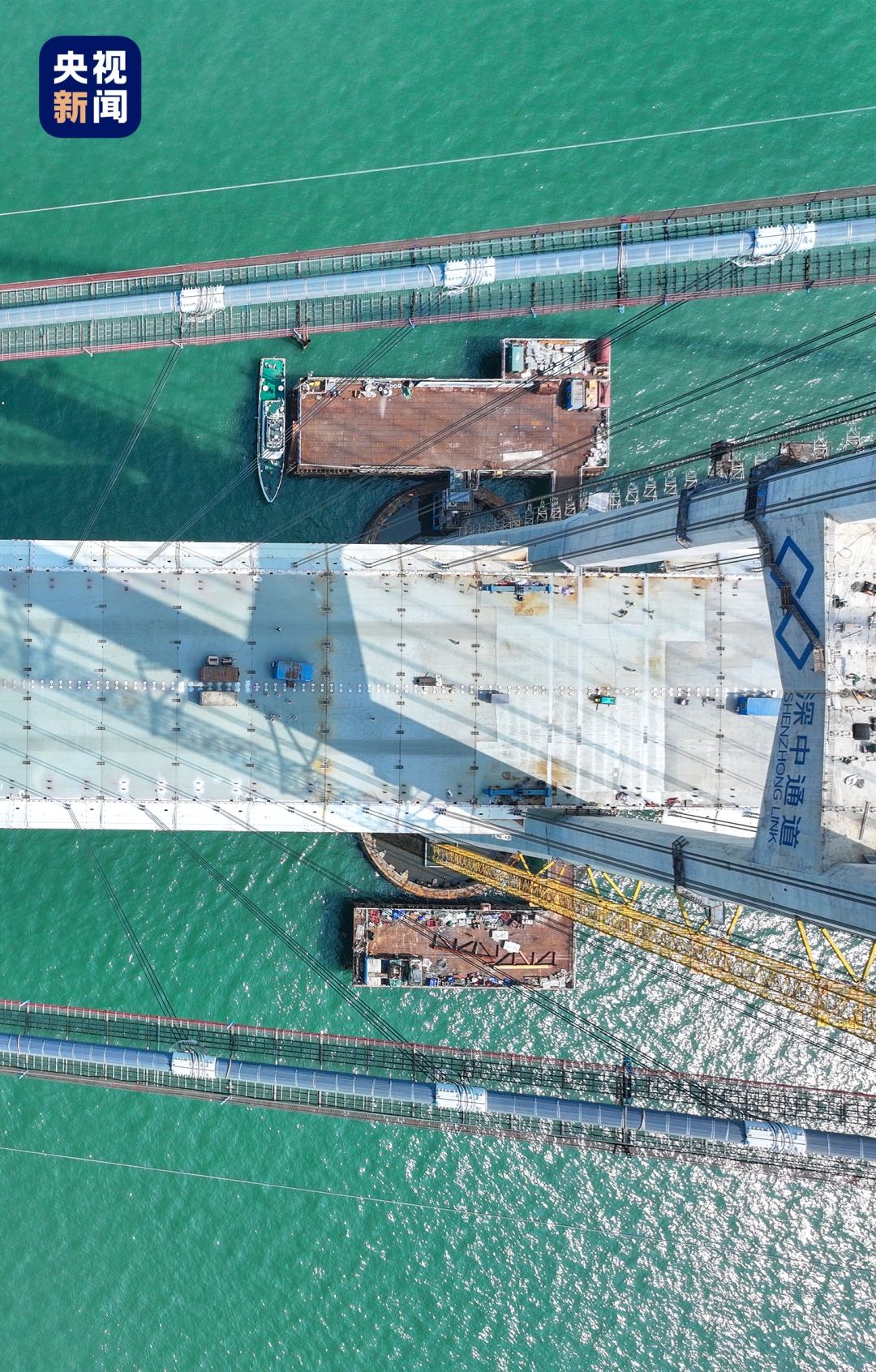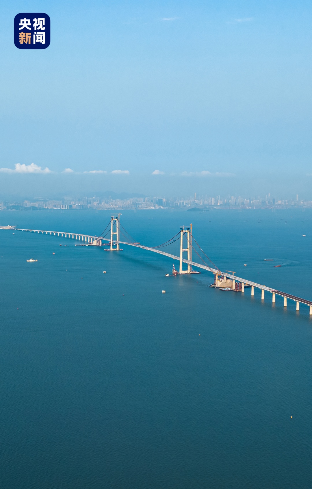 至此,“桥、岛、隧、水下互通”于一体的跨海通道正式形成。深中通道就像一条舞动的巨龙,腾跃在伶仃洋上空。