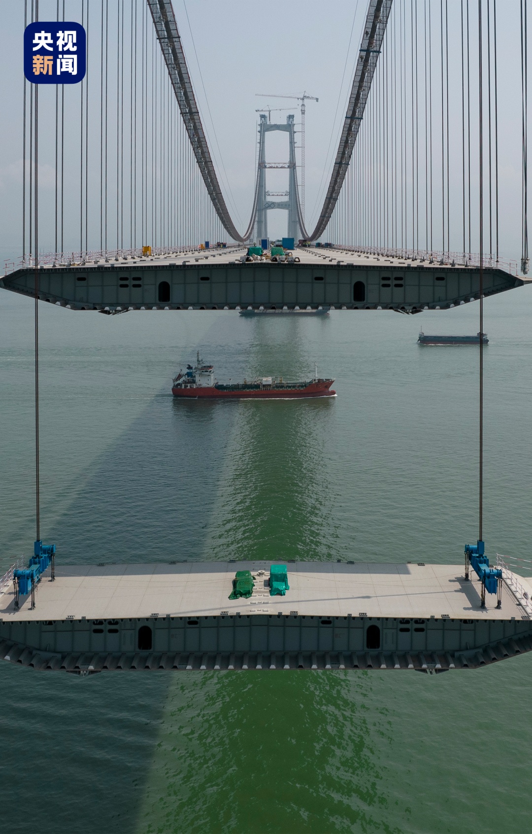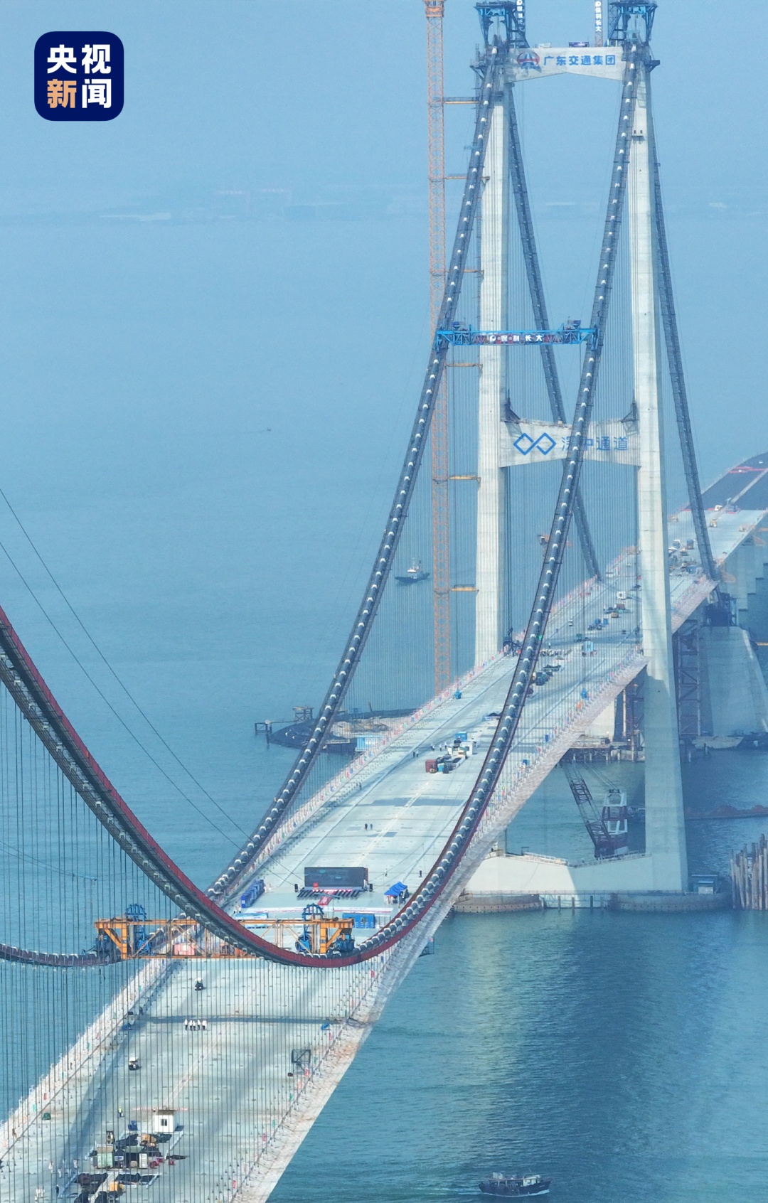 主跨1666米的伶仃洋大桥在今年4月底顺利合龙,成为世界跨径最大的全离岸海中钢箱梁悬索桥。