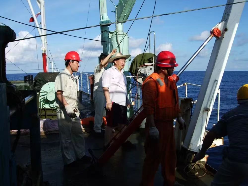 图为2010年5月,尚晓东(左三)出海科考。