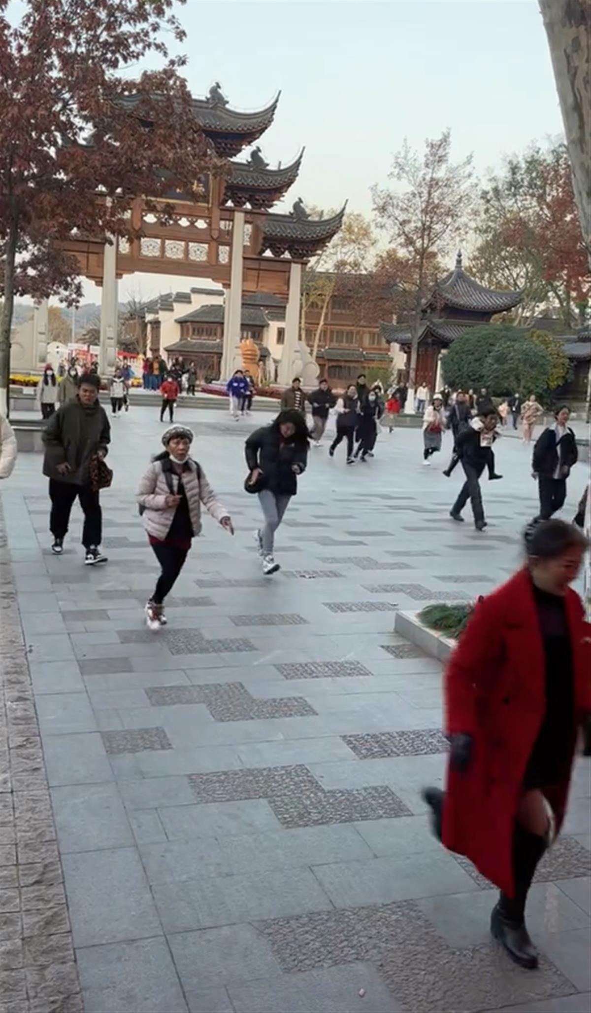 市民小跑着赶在7点之前进入景区(图源:视频截图)。
