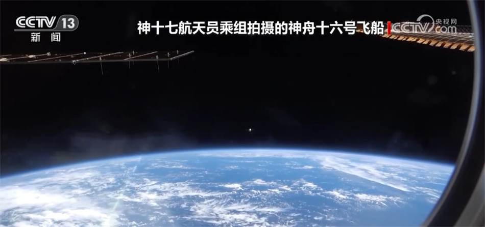 这是2023年10月30日,神舟十七号乘组在空间站内拍摄的画面,画面中,神舟十六号飞船正在撤离空间站。