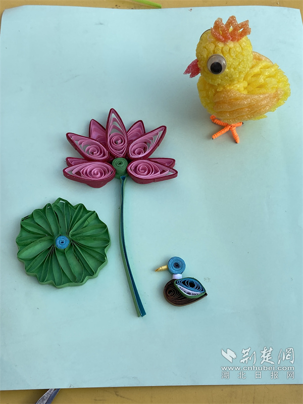“衍纸画”历史源远流长、技艺精湛,是中国世苑中一枝独秀的奇葩。来自武汉大学的退休教师王老师为大家细致演示衍纸的制作方法,示范花朵、小鸡等动植物的制作要点,展现出衍纸画成品的精美。在王老师的指导下,家长和小朋友们一起团结协作,将细长的纸条一圈圈卷起来,组合出形状各异的造型。最终,一幅幅生动、立体的衍纸作品呈现在眼前。一位家长面带笑意地说道:“今天动手做衍纸画,既增长了知识、开阔了眼界,孩子表现很活跃,我也开心。”