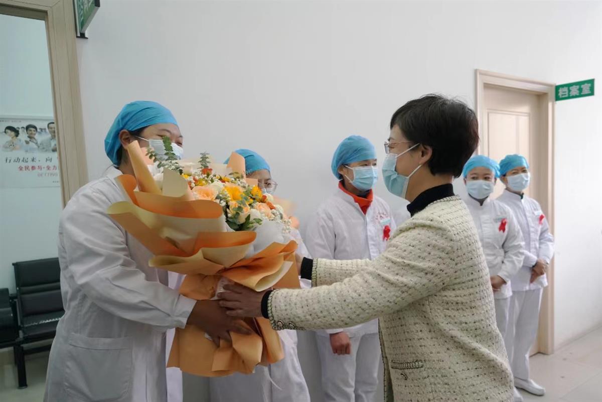 启动仪式前,襄阳市副市长王芳看望慰问艾滋病病毒感染者和艾防战线医护人员代表,并鼓励艾滋病病毒感染者乐观面对生活和疾病,积极配合治疗。