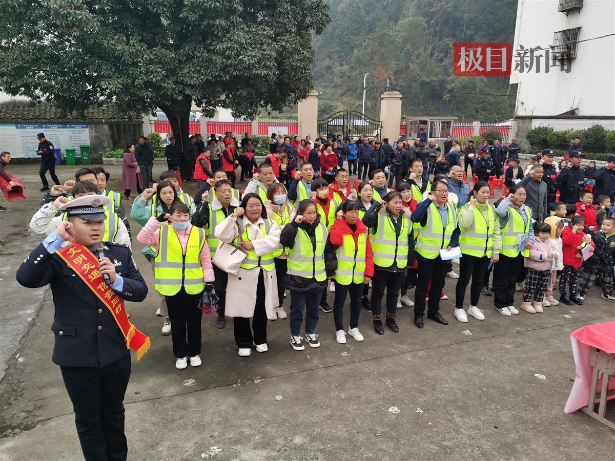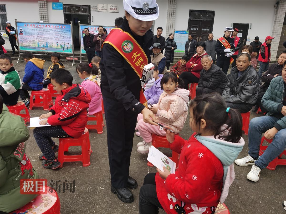 活动中,首先邀请潘口乡分管安全生产的领导致辞。随后组织观看了警示片《敬畏生命2》及宣传展板,主持民警结合潘口塘村辖区近期发生的一起亡人事故及今年全县涉及三轮载货摩托车、低速载货汽车、老年代步车、电动自行车等身边典型事故案例,用血淋淋的后果教训,深刻剖析了酒后驾驶、无证驾驶、超速超载、违法载人、不戴头盔、乱穿马路等严重交通违法的危害性。宣讲民警围绕“文明交通 你我同行”主题,采取以案释法、灵活说理方式,分析讲解了安全驾驶、安全乘车、安全行路等文明交通常识及注意事项。特别强调了入冬后冰雪雾霾天气多发致视线不良,加之老年朋友参与交通活动时行动不便、反应迟缓,车人相撞机率增大,提醒驾驶人务必注意观察、谨慎驾驶,老年村民朋友们尽量不要在国省干道及交通复杂路段参与交通。在现场互动有奖竞答环节,重点演示剖析了不佩戴合格安全头盔、不注意观察驾驶盲区、饮酒后现场“测试”“开门杀”等交通陋习可能带来的严重后果。观众每答对一个交通安全知识提问,均赠送“小熊交警”、安全头盔、塑料脸盆或写字本等奖品,现场欢笑连连,掌声不断。最后,组织部分参会人员进行了文明交通集体宣誓,并邀请大家在会台海报背景墙上踊跃签名,逐人发放了“122”主题系列宣传折页资料。期间,潘口派出所还就“反电诈、防火灾(特别是冬季烤火时防止一氧化碳中毒)、禁盗采(绿松石矿)、勿赌博”等进行了宣传强调提示。