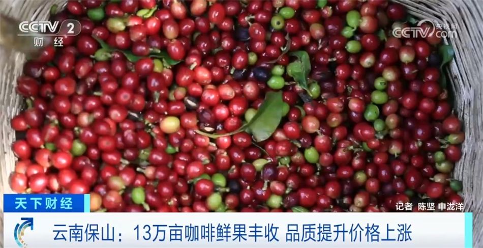 云南的咖啡产量占到全国98%,这些天,在保山市,13万亩咖啡鲜果陆续迎来采收。随着咖啡品质不断提升,价格也呈现连年上涨的趋势。