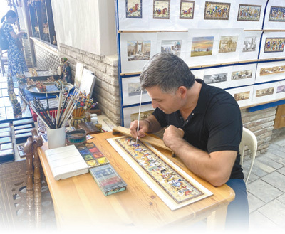 一名画师在布哈拉一处集市内创作有关古丝绸之路的画作。 |