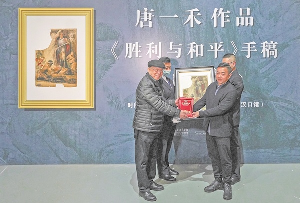 12月4日,唐一禾作品《胜利与和平》手稿捐赠仪式,在武汉美术馆展厅内举行。