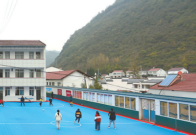学生们在操场开展体育运动。