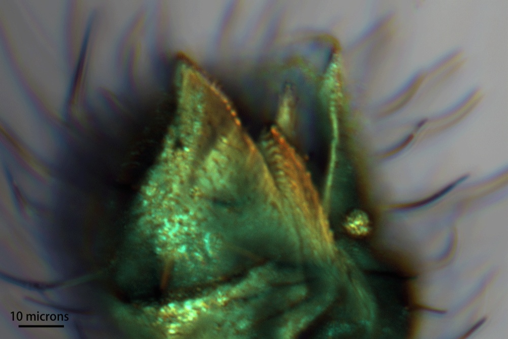 激光共聚焦显微镜下的雄蚊口器细节。(中国科学院南京地质古生物研究所供图)
