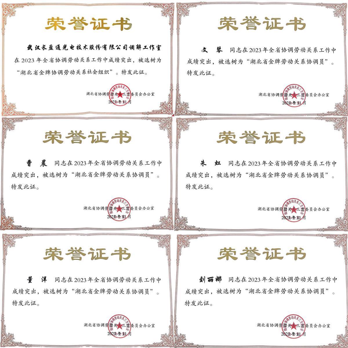 湖北省企联系统培育选树的50名“湖北省金牌劳动关系协调员”包括湖北振华化学股份有限公司的文琴、湖北航天技术研究院总体设计所的曹晨、中铁十一局集团第四工程有限公司的朱虹、荆门市格林美新材料有限公司的董洋、武汉伟鹏控股集团有限公司的刘丽娜等。7家“湖北省金牌协调劳动关系社会组织”包括武汉长盈通光电技术股份有限公司调解工作室、恩施州企业联合会/企业家协会、麻城市企业联合会等。