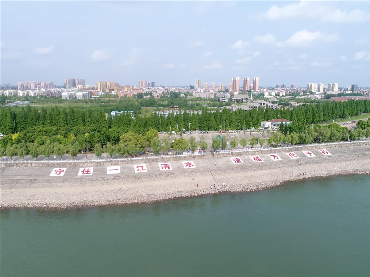 长江江陵岸线,呈现一幅绿色生态图景