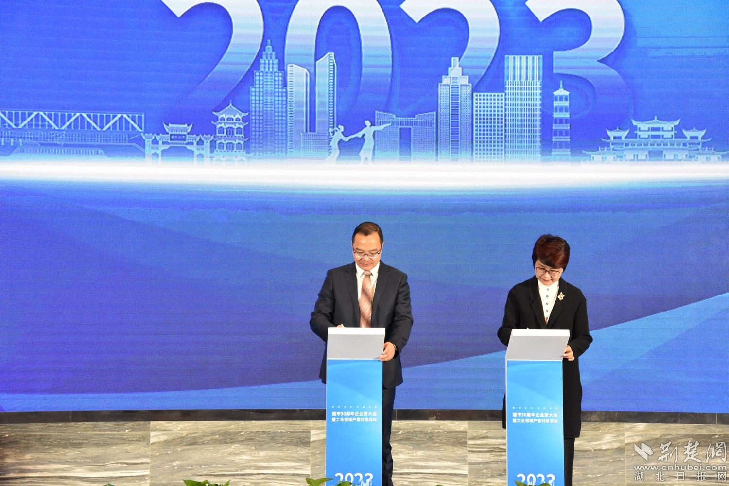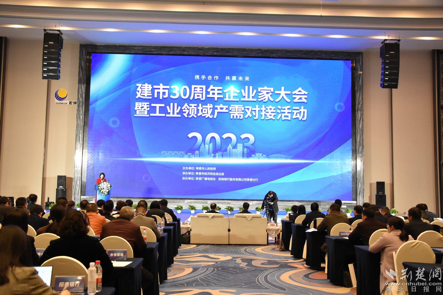 荆楚网(湖北日报网)讯(记者叶修颀 通讯员马诗慧 叶智华)12月6日,孝感市举行建市30周年企业家大会暨工业领域产需对接活动。本次活动以“携手合作、共赢未来”为主题,现场进行了赛迪科创中心(孝感)项目签约和“政产学研金服用”合作签约仪式以及企业产需发布、专场对接等活动。