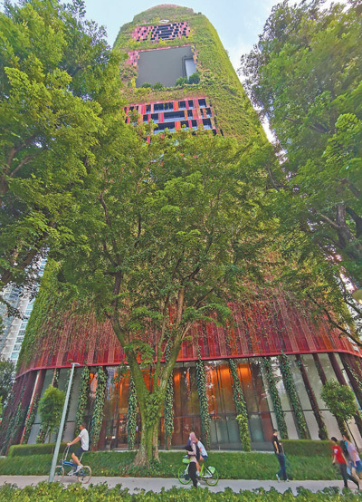 滨海湾花园是新加坡建设“花园城市”的众多案例之一。位于唐人街附近的豪亚酒店暨办公大楼,27层高的橙红色楼面被21种攀缘植物覆盖,大楼40%的部分为垂直整合的公共绿地。这种独特的设计,让大楼获得世界高层建筑与都市人居学会颁发的“世界最佳高层建筑”奖。
