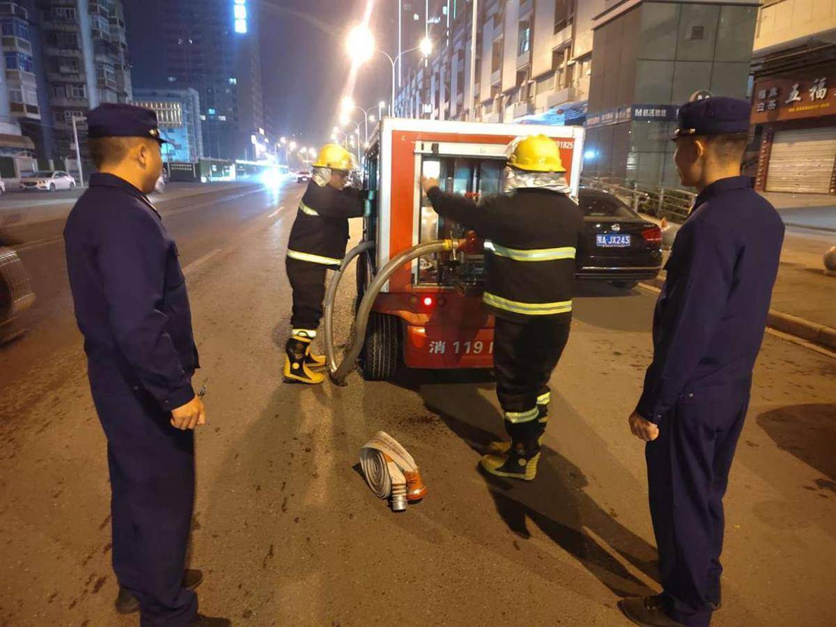 在硚口区,消防大队联合应急局、各派出所及街道,围绕“百日会战”八类整治对象中夜间营业的场所开展夜查,同时也对“九小场所”和居民小区开展消防安全宣传提示。