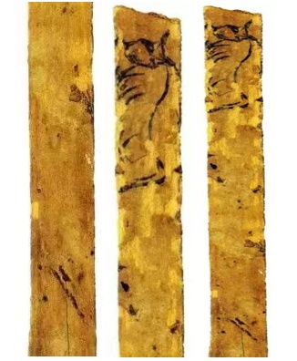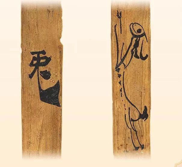 △出自肩水金关遗址的简,画有一动物形象,推测为牛