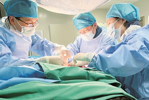 贾一帆主任(中)正在手术 武汉大学人民医院供图