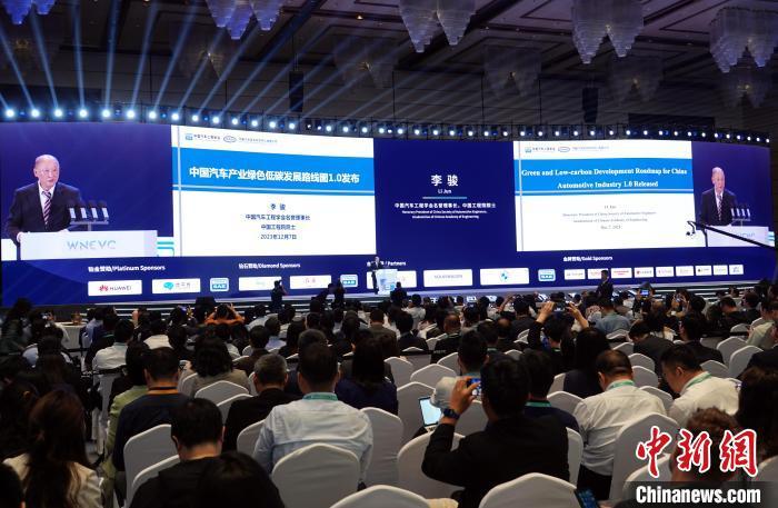 2023世界新能源汽车大会上,《中国汽车产业绿色低碳发展路线图1.0》正式发布。中新网记者 孙自法 摄