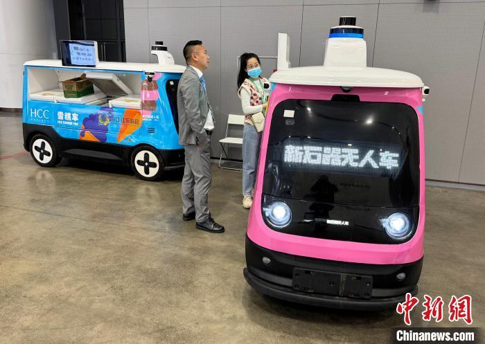 2023世界新能源汽车大会上,技术展览上推出的新石器无人车引人瞩目。中新网记者 孙自法 摄