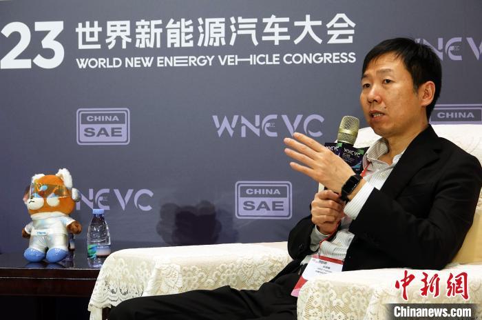 2023世界新能源汽车大会上,中国汽车工程学会副理事长兼秘书长侯福深接受媒体采访。中新网记者 孙自法 摄