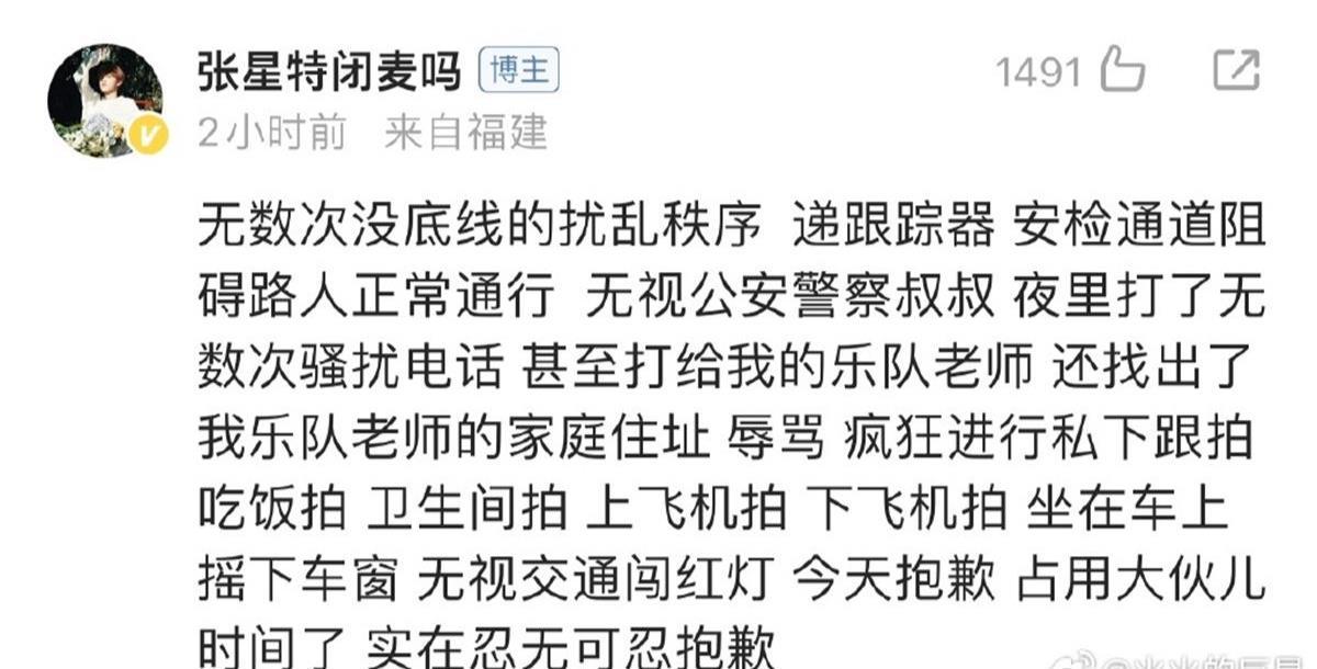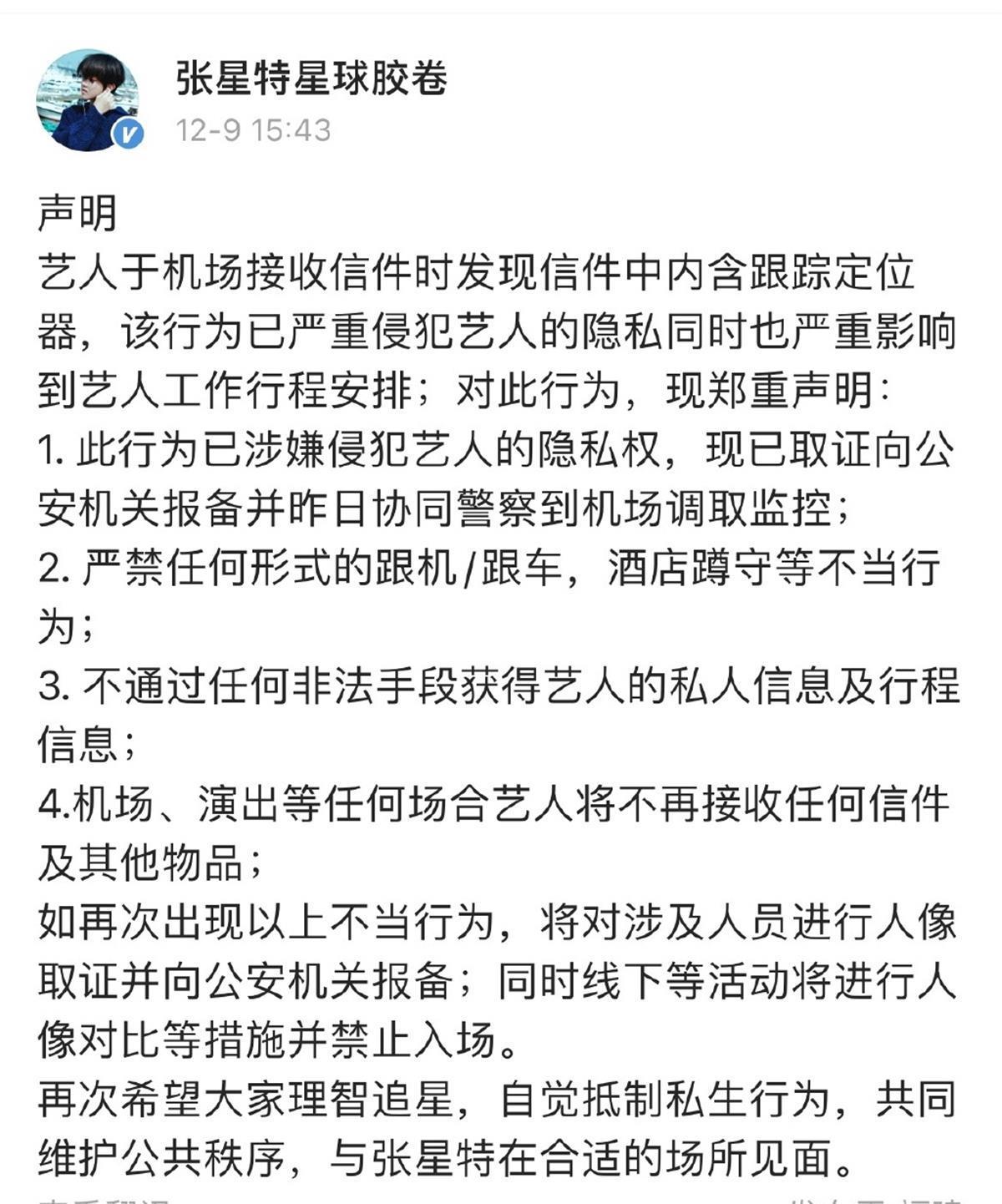 张星特及其工作室都曾发声抵制私生饭(来源:微博)