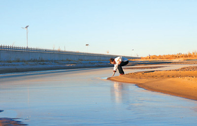 维护河道环境卫生,是冬季巡河的职责之一。河水还没上冻,见着漂浮物、垃圾、有害废物等,敖云塔娜就及时打捞出来,同时排查周边有无乱占、乱建、乱堆、乱采等问题。离嘎查不远就是大漠胡杨林景区,旅游旺季时,会有大批游客。那时,敖云塔娜又会带上几名党员,当起“安全员”和“宣传员”,认真巡护巡查堤防,提醒游客注意安全,宣传防汛、防溺水、环保等知识。“我们是党员,只要有需要,我们就顶上去。”她说。