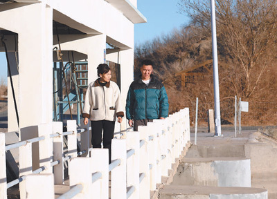 敖云塔娜(左)在检查水闸口。 |