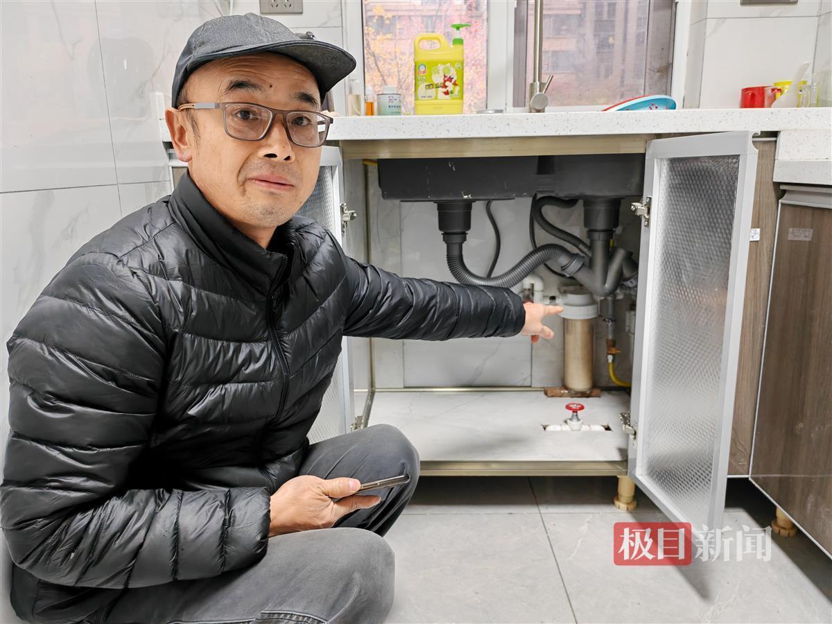 马先生指着厨房下的管道表示,污水是从此处返流到其家中的