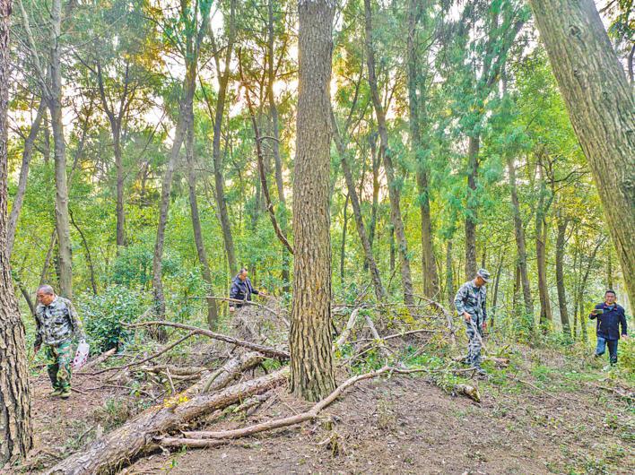 11月21日,八岭山林场护墓员日行10余小时,在密林丛中仔细查看墓冢周边环境是否有变化。