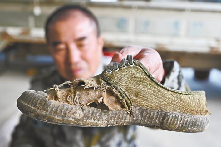 11月21日,王方哲从早上出发,带点红薯,出门进山就是一天。他家中随处可见这样走破的解放鞋。