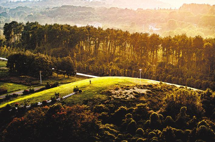 在荆州古城西北约20公里,群山环抱的八岭山林场内,古墓葬密集。11月21日,八岭山古墓被夕阳染出一道圆润弧线。
