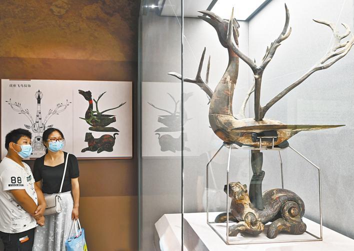 历史文化是荆州古城的灵魂。2022年7月22日,游人在荆州博物馆欣赏精美的文物展品。