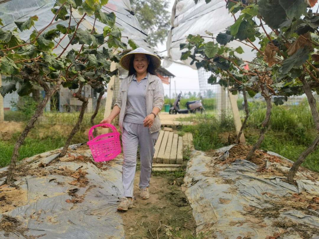 采访当天上午九点,果园里已经来了采摘的游客。“今年来了好几次了,早上摘最新鲜最凉快。”“常客”王梦洁已经采出了经验,她还把鼎丰生态葡萄园安利给了好几个吃货朋友,“性价比之王,必须推荐!”