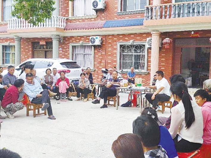 ▼保康县中坪村召开屋场会,治理房前屋后环境问题。