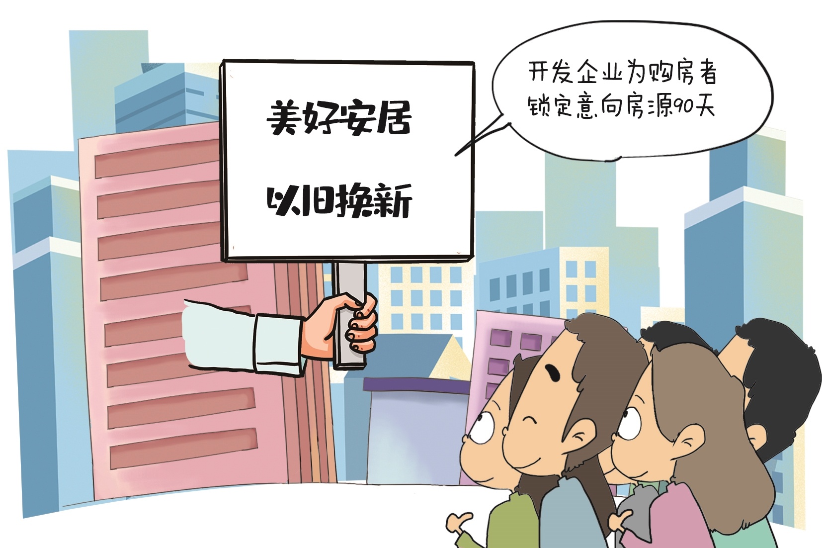 住房“以旧换新”活动具体形式,采取开发企业、经纪机构、购房者三方联合的方式进行。即购房者与开发企业签订新建商品房意向购买协议,同时与经纪机构签署二手房销售委托协议。在以上协议中约定,开发企业为购房者锁定意向房源90天。同一时段,购房人仅能锁定一家开发企业的新房房源,锁定房源套数可与开发企业协商。
