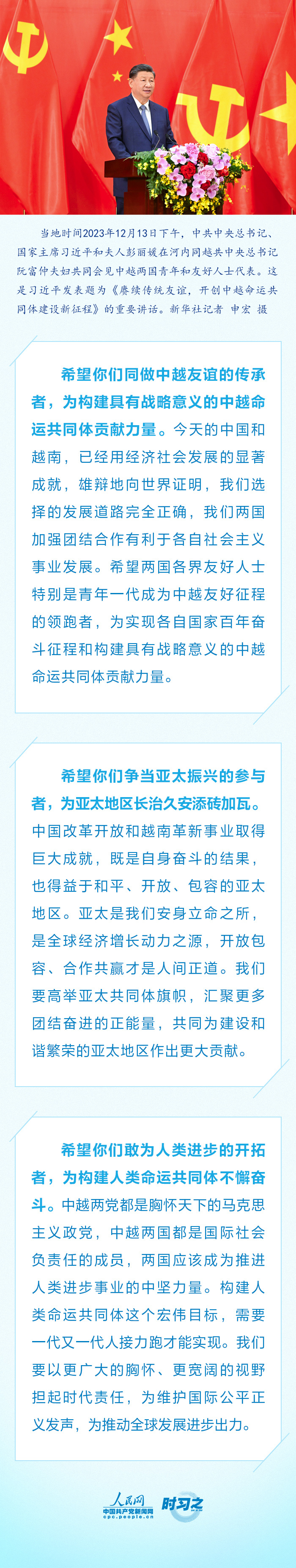 习近平发表了题为《赓续传统友谊,开创中越命运共同体建设新征程》的重要讲话,对两国青年提出希望。