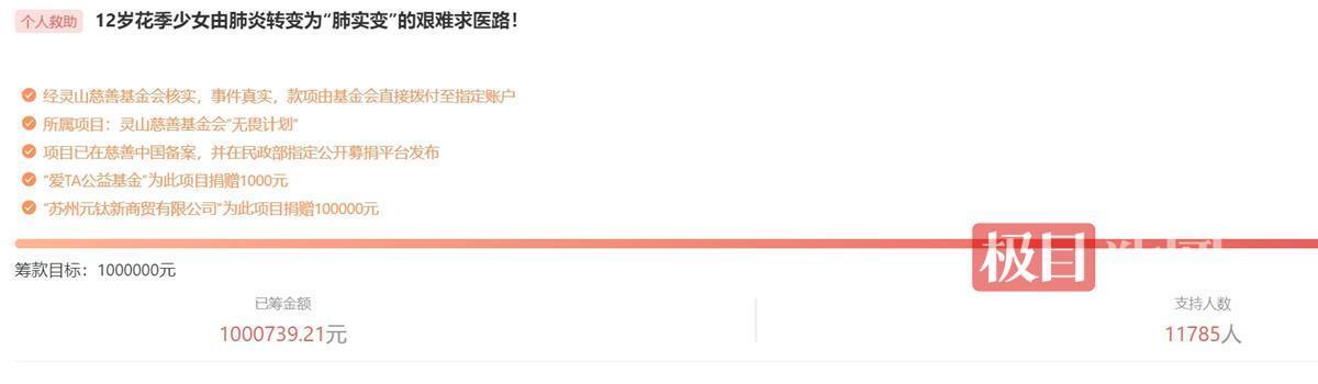 陈静瑜发文后,爱心人士纷纷伸出援手。灵山慈善基金会发起筹款项目,为雯雯筹集第一期诊疗所需费用约100万元。该项目发起后的24小时内,共计筹款119万余元。