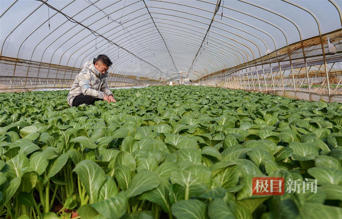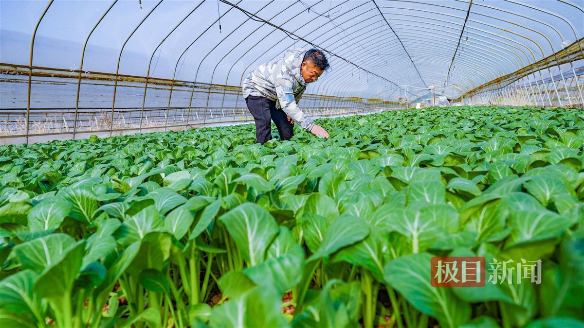 12月20日,武汉天气晴朗,久违的阳光洒在东西湖区东山农场的大地上。上午10时许,极目新闻记者抵达鑫三江都市田园综合体的连片蔬菜基地时,农户李师傅正在大棚里打理即将采摘的各种快生菜,忙得不可开交。