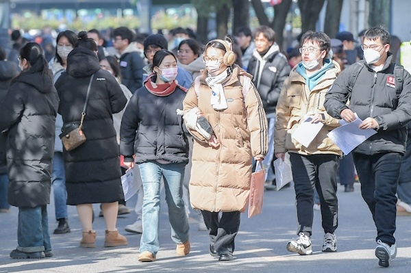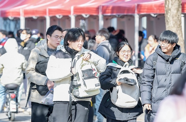 12月23日,为期3天的2024年全国硕士研究生招生考试拉开帷幕。图为湖北大学考点,考生结束上午第一门考试后从容离场。 楚天都市报极目新闻记者黄士峰摄