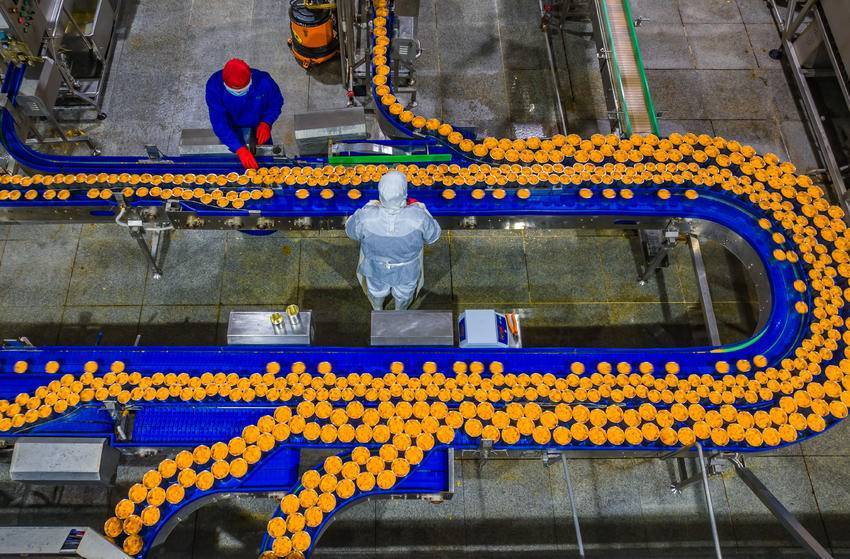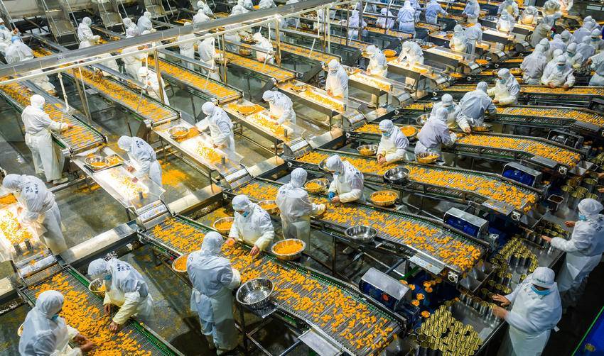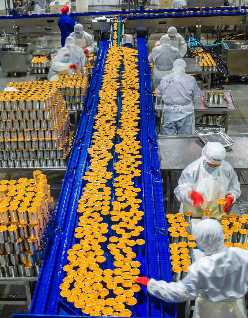 12月21日在秭归县屈姑食品有限公司拍摄的柑橘罐头生产线。