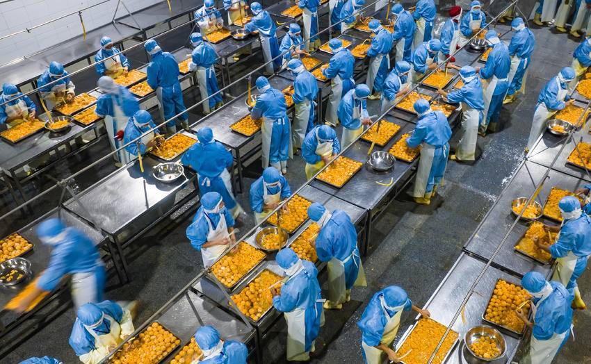 12月21日,秭归县屈姑食品有限公司工人在柑橘罐头生产线上忙碌。
