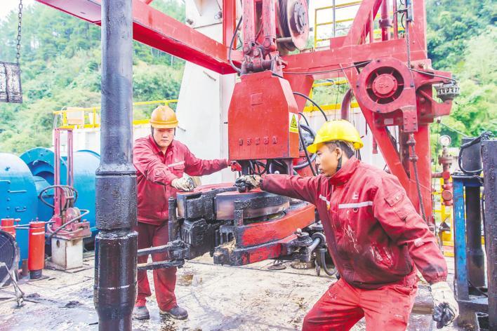 利川市建南镇页岩气钻井台上,井队施工人员正在忙碌。 (湖北日报全媒记者 梅涛 摄)