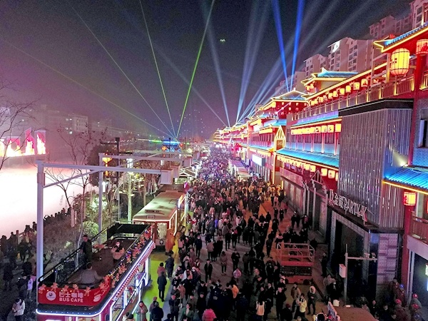 “好漂亮、好热闹、好有口福、大饱眼福!”12月30日晚,湖北竹溪县倾力打造的中国首个沉浸式文旅街区“武陵不夜城”正式开街,来自重庆市巫溪的游客李女士一边赏山二黄戏曲、品竹溪美食、观水秀表演,一边拍照发朋友圈,惊叹不已。